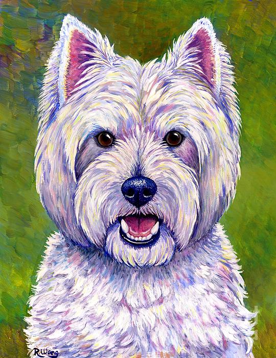 A colorful and expressive West Highland White Terrier Dog, also known as a Westie, painted with a bright and colorful palette.