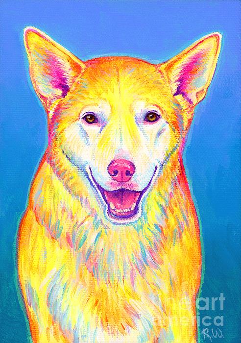 A colorful pet portrait of a cute mixed breed yellow dog named Trixy.