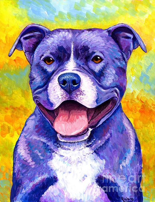 A colorful and expressive American Pitbull Terrier Dog (American Staffordshire Terrier) acrylic painting. A pitbull dog painted with bright, vibrant... more